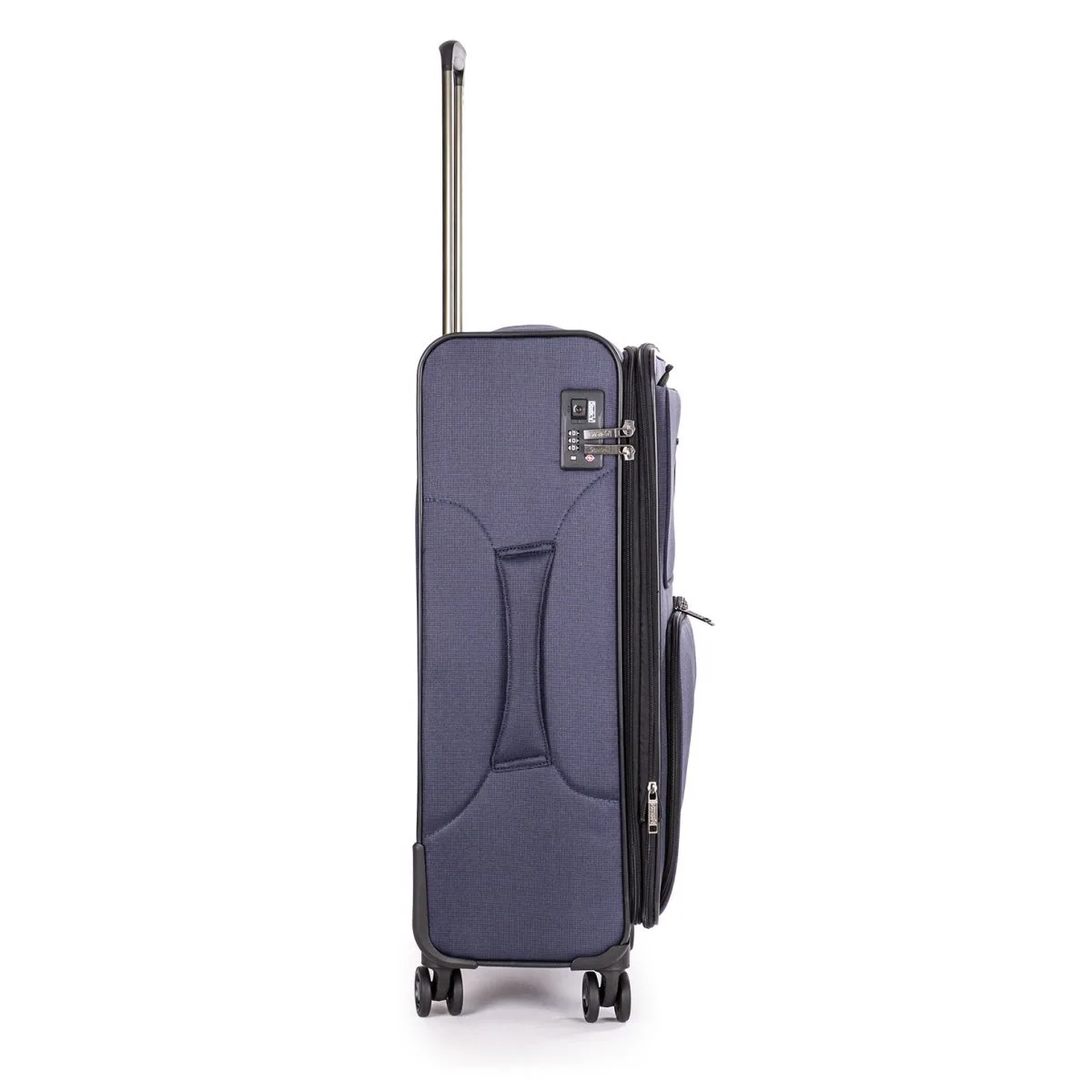 Die vier leichtläufigen 360° drehbaren Doppelrollen und der ergonomische Handgriff ermöglichen auch bei schwereren Lasten einen leichten Transport. Die beiden Aussenfächer ermöglichen einen leichten und sofortigen Zugriff. Das Hauptfach ist sehr geräumig und kann mit einem 2-Wege-Reissverschluss geschlossen werden. Die aus Polyester gefertigten Koffer haben zudem ein eingelassenes TSA-Schloss. Sollte der Platz nicht ausreichen kann der Koffer von 78 L auf 88 L erweitert werden. Mit STRATIC CONNECT NFC-Chip ausgestattet.