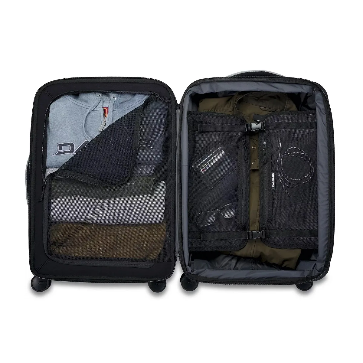 Der Verge 30L macht eine Laptop- oder Tablet-Tasche überflüssig und bietet eine leicht zugängliche große Fronttasche mit einer gepolsterten Neoprenhülle, in die die meisten modernen Laptops passen. 360° geräuschlos drehende Räder und ein hochwertiger, einklappbarer Griff machen das Reisen einfach.