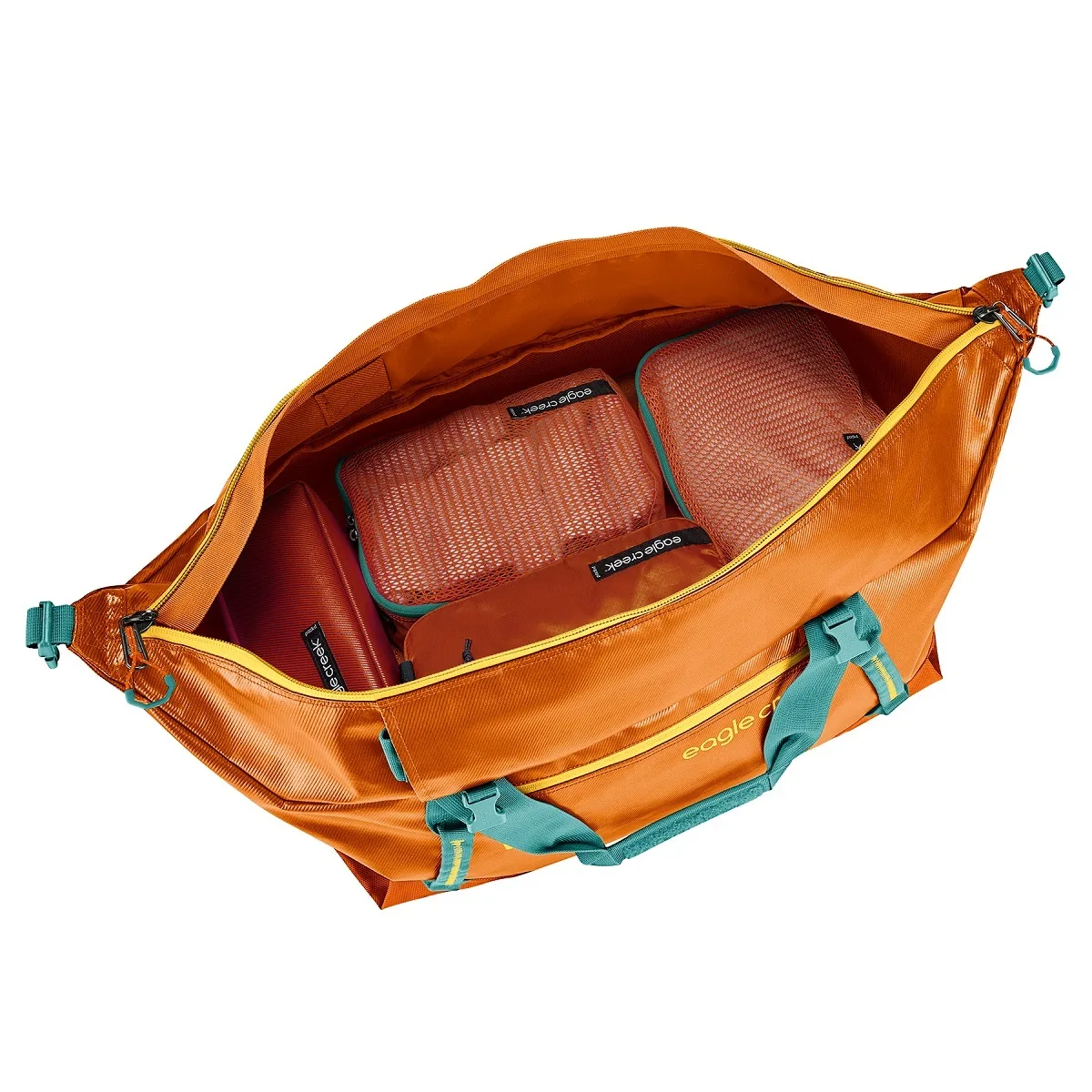 Dieser ultra-robuster Duffelbag kommt mit einer breiten Öffnung, sodass ihr Inhalt schnell und einfach zugänglich ist. Mit den vielseitigen Tragemöglichkeiten der verstaubaren Rucksackträger und dem zu 100 % recycelten Außenmaterial hält Eagle Creek ein wichtiges Versprechen: Sie entwickeln Ausrüstung für Reisende, die einen positiven Impact hinterlassen möchten.