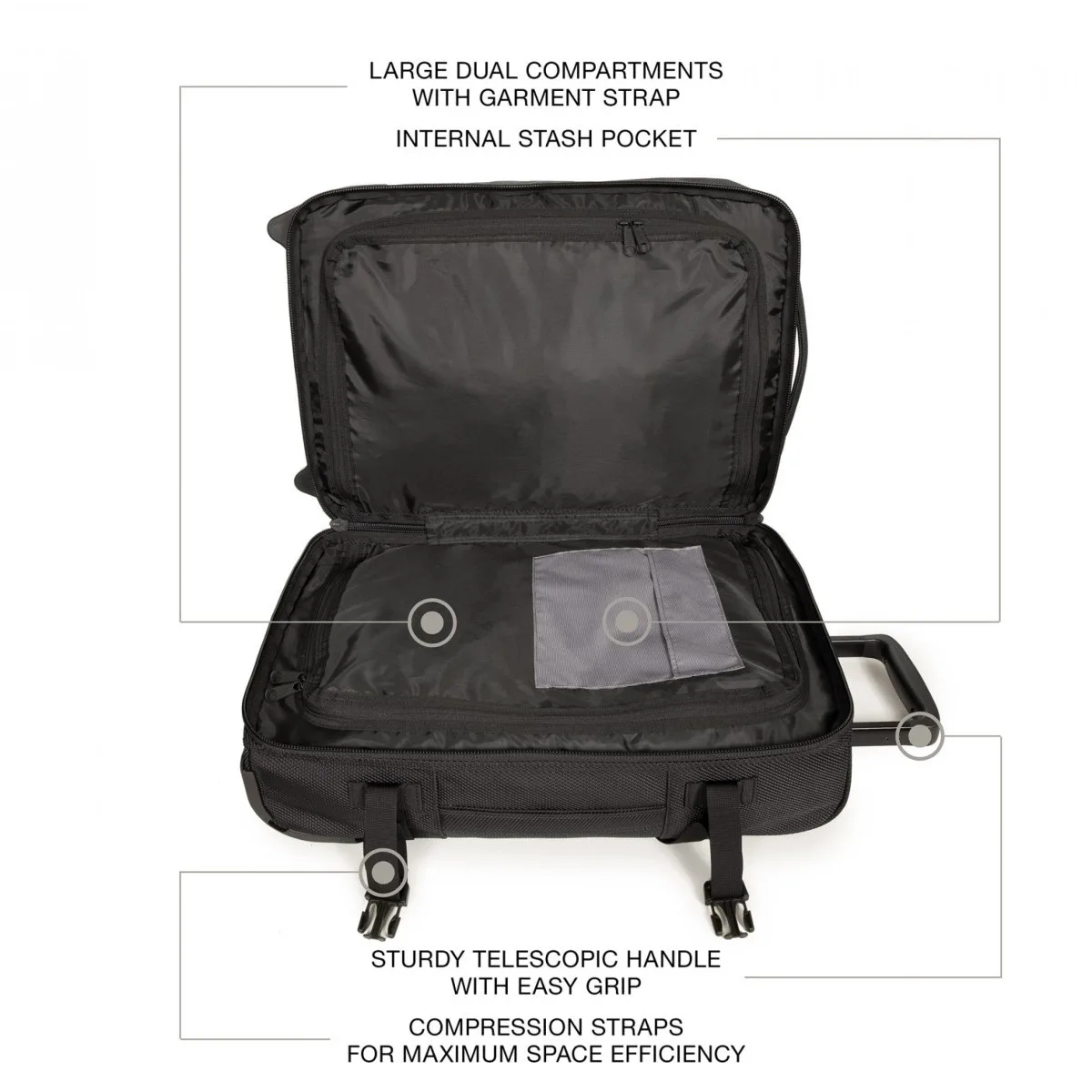 – Dank leichtgängigen Rollen wird problemlos durch Stadt oder Flughäfen navigiert