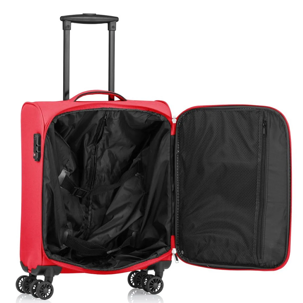 Genova, die handlich praktische Weichgepäck Serie von Clipper by Pack Easy! Kabinengepäck mit 8 Rollen, innen einseitig packbar. Diverse Aussentaschen, Innentasche mit Packgurte. TSA-Zahlenschloss.