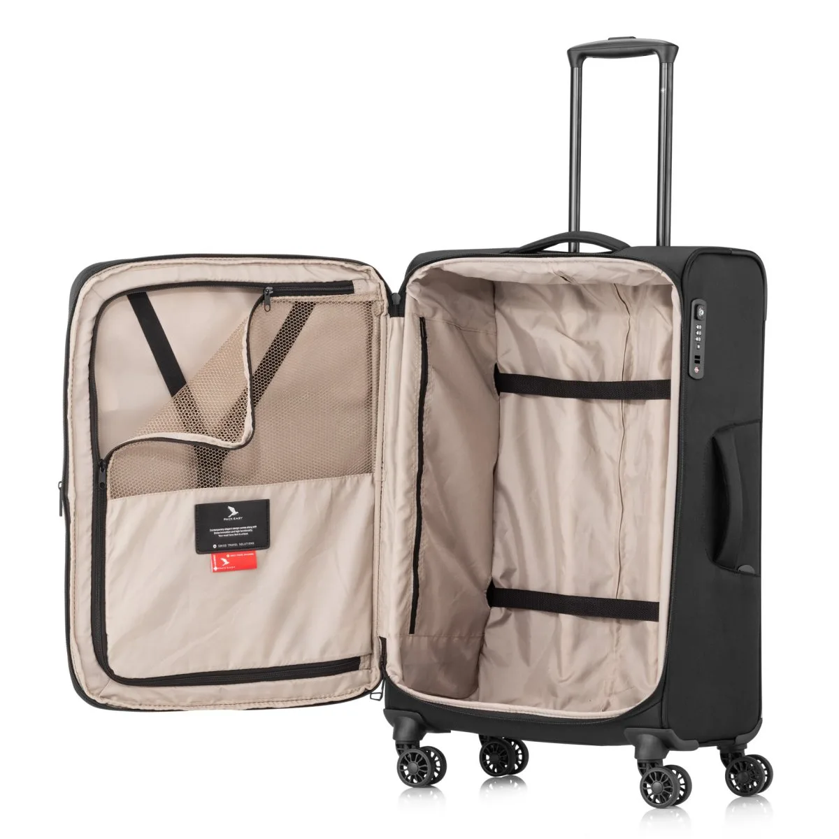 8 Rollen | innen einseitig verschliessbar mit Reissverschluss | innen einseitig packbar | diverse Aussentaschen | Innentasche | Packgurte | Dehnfalte | TSA-Zahlenschloss | 5 Jahre Garantie