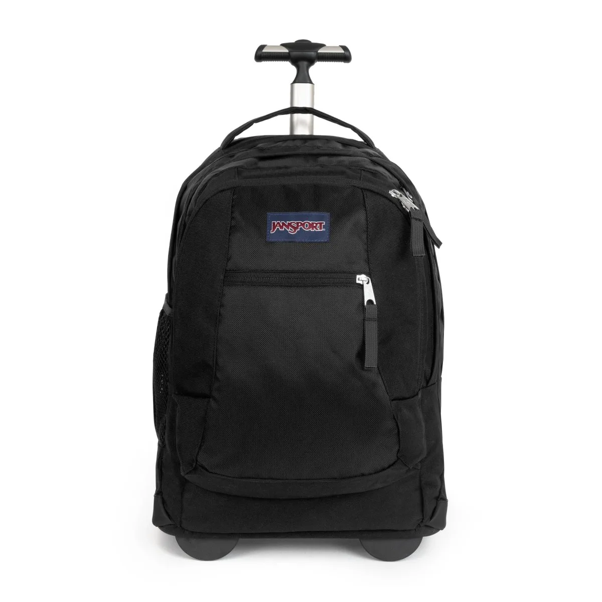 Der JanSport Driver 8 Rollrucksack lässt sich dank der verstaubaren Schultergurte von einem Rucksack in einen Trolley verwandeln. Dieser Laptop-Rucksack mit Rädern verfügt über ein gepolstertes 15-Zoll-Laptopfach, eine seitliche Trinkflaschentasche und eine Organizer-Tasche vorne.