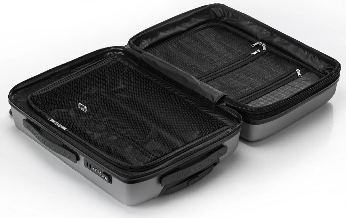 – Praktisches Interieur: Eine RV-Netztrennwand stabilisiert das Reisegepäck. Ein RV-Zwischenboden (+ 2 RV-Netztaschen für Utensilien) sowie die RV-Netztrennwand teilen den Koffer in 3 Kompartiments. Das elegante Interieur besteht aus reißfestem Polyester und ist äußerst pflegeleicht.