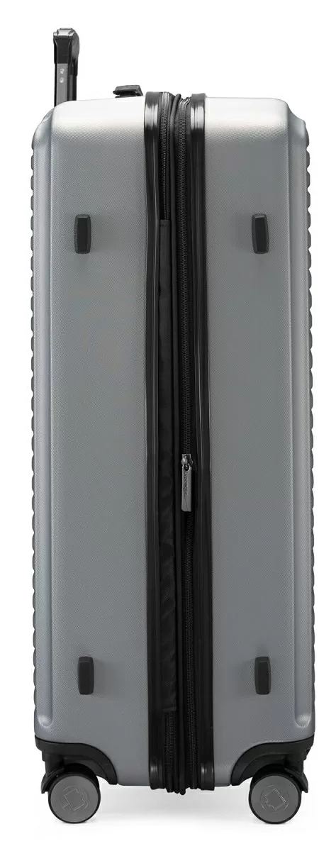 Handliches Reisegepäck aus 100% ABS, besonders bruch- und kratzfest. Flache Hartschale im dynamischen Look. Mit verstärkter 8 cm Koffererweiterung (bis zu 40% mehr Volumen) für enormes Packvolumen. Sicheres TSA-Zahlenschloss, versenkte Doppelrollen für mehr Stauraum und praktisches Interieur.