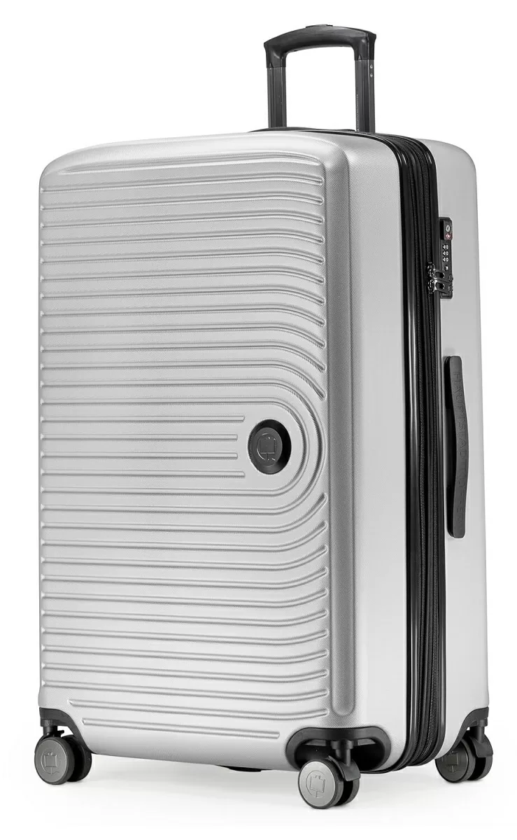 Handliches Reisegepäck aus 100% ABS, besonders bruch- und kratzfest. Flache Hartschale im dynamischen Look. Mit verstärkter 8 cm Koffererweiterung (bis zu 40% mehr Volumen) für enormes Packvolumen. Sicheres TSA-Zahlenschloss, versenkte Doppelrollen für mehr Stauraum und praktisches Interieur.