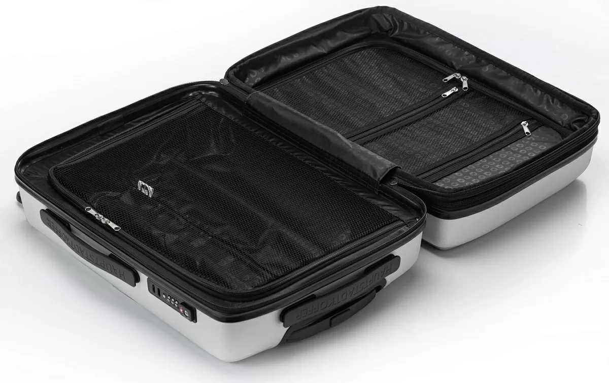 – Praktisches Interieur: Eine RV-Netztrennwand stabilisiert das Reisegepäck. Ein RV-Zwischenboden (+ 2 RV-Netztaschen für Utensilien) sowie die RV-Netztrennwand teilen den Koffer in 3 Kompartiments. Das elegante Interieur besteht aus reißfestem Polyester und ist äußerst pflegeleicht.