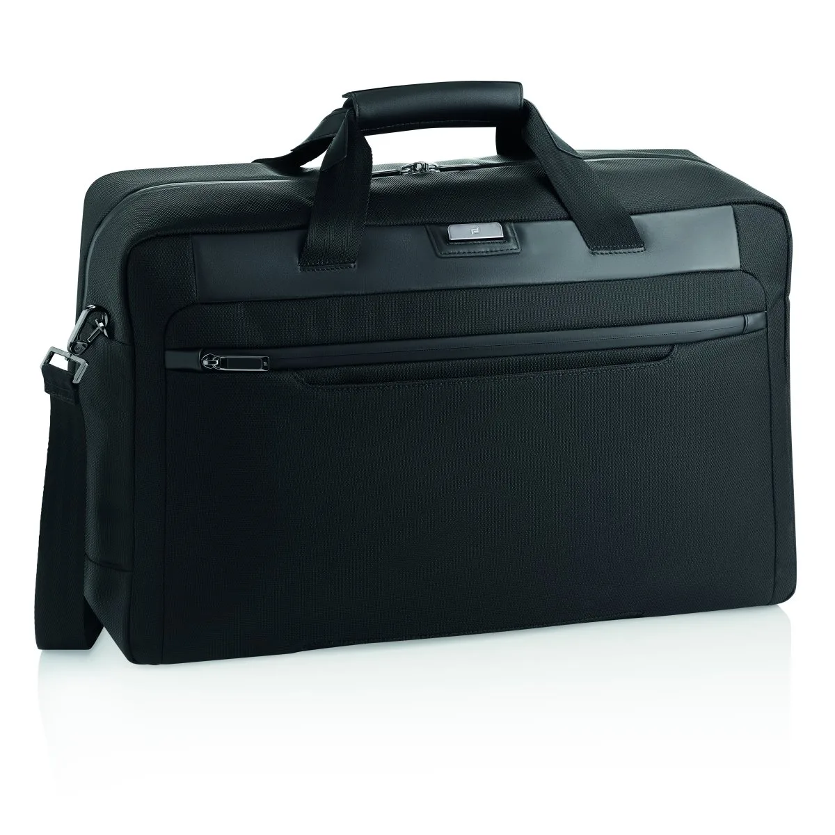 Die Kombination von strukturiertem, wasserabweisendem Nylon und signifikanten Glattleder-Details macht den Porsche Design Nylon Weekender zum optischen Highlight – und äußerst widerstandsfähig. Wie alle Taschen und Rucksäcke der Serie wurde die Konstruktion exakt auf die Bedürfnisse des modernen, dynamischen Geschäftsalltags abgestimmt. Das Hauptfach verfügt über zusätzliche Reißverschlusstaschen innen. Eine Sleeve-Tasche aus Futterstoff lässt sich ausklinken – perfekt für Wäsche oder als Washbag. In der Fronttasche mit Zipper und Business-Organizer und der hinteren Einschubtasche findet alles Platz, worauf Sie schnellen Zugriff benötigen. Apropos Griff: Die Reisetasche lässt sich sowohl lässig in der Hand tragen als auch komfortabel per gepolstertem Schultergurt umhängen – oder per Trolley-Link auf Ihrem Koffer befestigen.