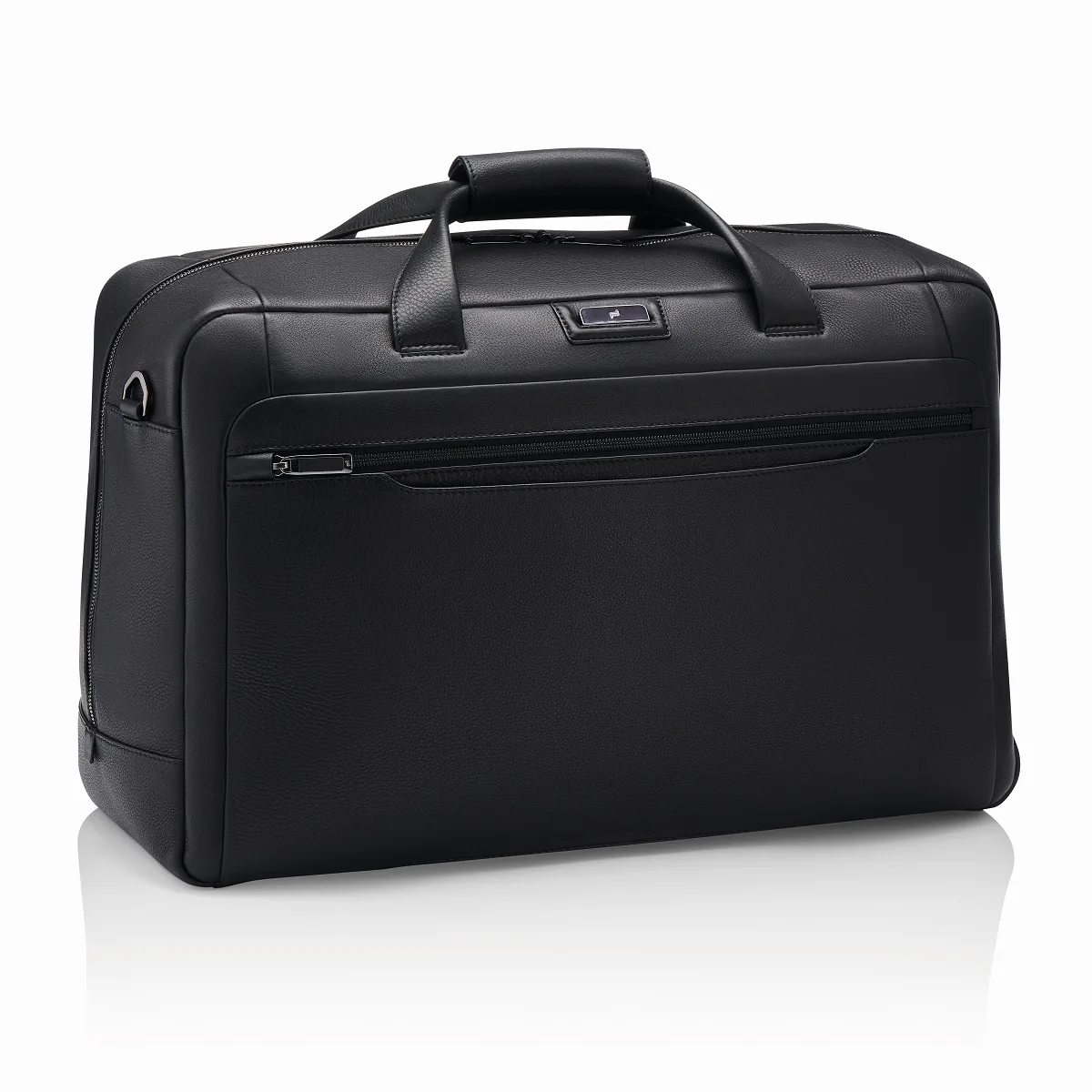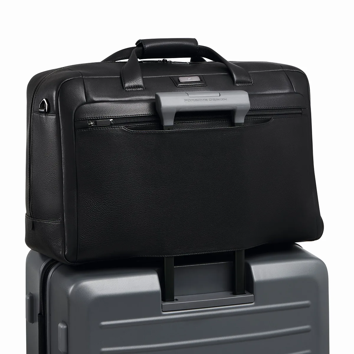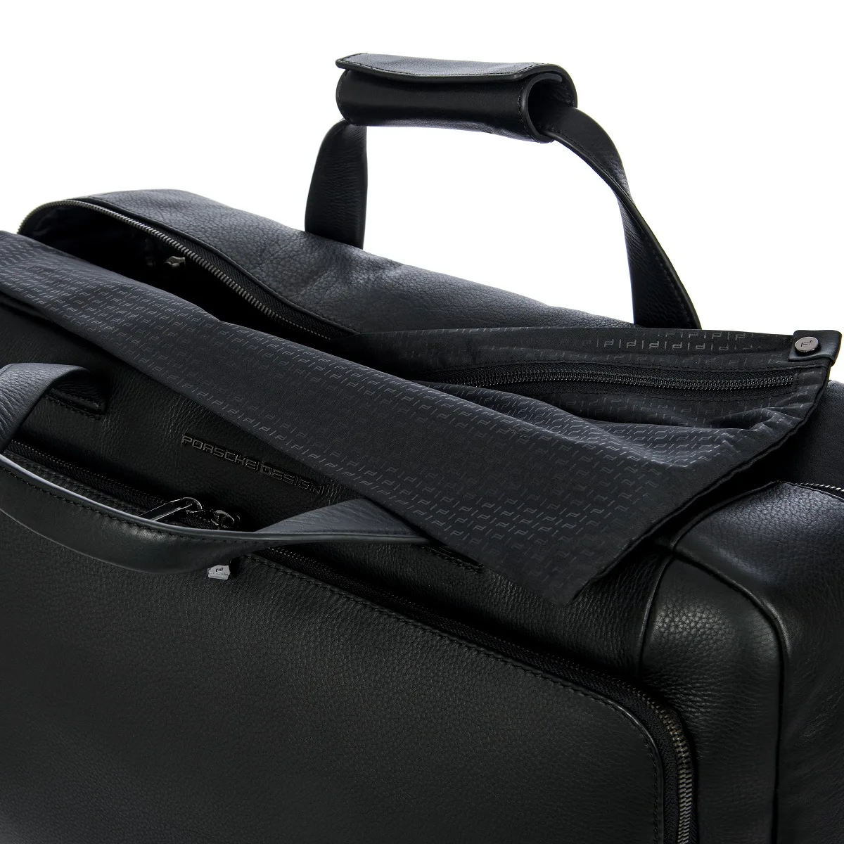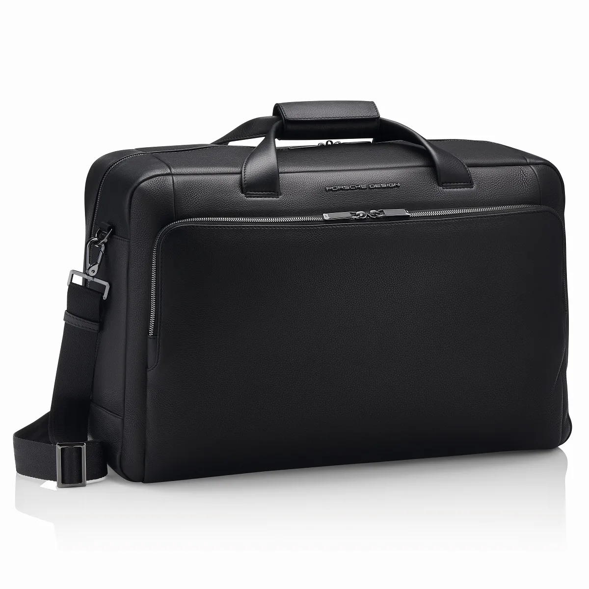 Der Porsche Design Roadster Leather Weekender ist die stilvolle Alternative zum Trolley. Kompakt im Format, hochwertig in der Verarbeitung, smart in den Details. Das Hauptfach ist über einen großen Reißverschluss zugänglich. Die innere Sleeve-Tasche aus Futterstoff lässt sich ausklinken – perfekt für Wäsche oder als Washbag. In der Fronttasche mit Zipper und Business-Organizer und der hinteren Einschubtasche findet alles Platz, worauf Sie schnellen Zugriff benötigen. Apropos Griff: Die Reisetasche lässt sich sowohl lässig in der Hand tragen als auch komfortabel per gepolstertem Schultergurt umhängen – oder per Trolley-Link auf Ihrem Koffer befestigen.