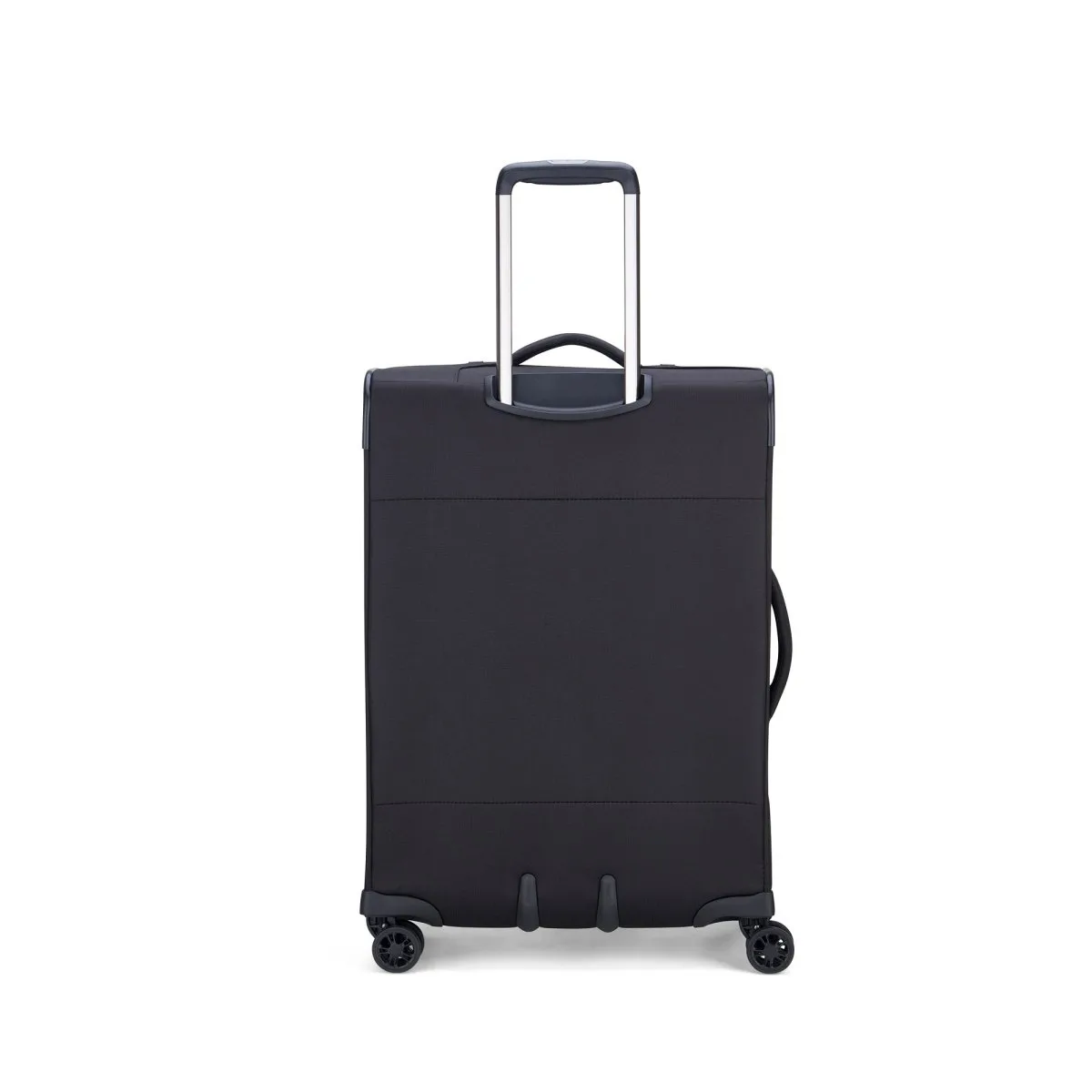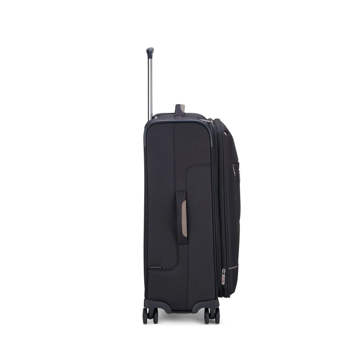 Die Koffer aus der Kollektion Sidetrack eignen sich durch ihre Stabilität und Belastbarkeit für jede Reise. Die leichte und resistente Innenstruktur sowie die eingebauten Doppelräder ermöglichen einen sicheren und bequemen Transport ihrer Reiseutensilien. Die Koffer wurden aus einem Polyesterstoff gefertigt, welcher zum einen wasserabweisend und zum anderen verschleiss- und reissfest ist. Zusätzlich wurde das Design mit metallischen Accessoires ergänzt und verfeinert. Der Kofferinhalt kann jeweils mit einem Packgurt fixiert werden. Das Fach mit Doppeltasche, das erweiterbare System und der Doppelreissverschluss für den Diebstahlschutz heben die hohe Funktonalität der Serie auf eine neue Stufe.