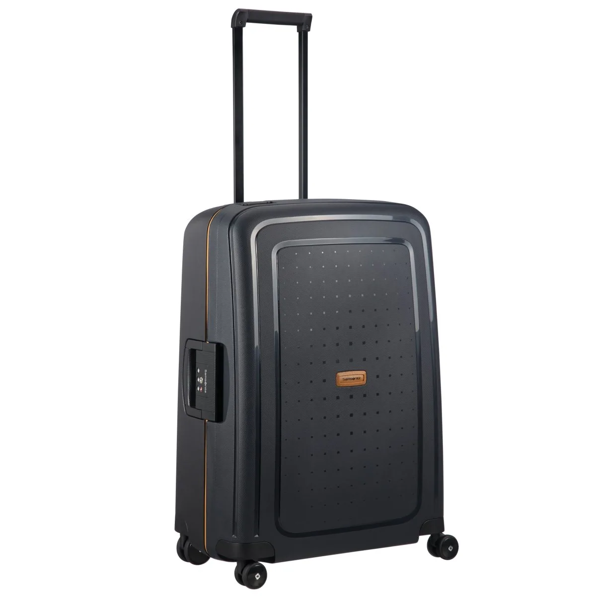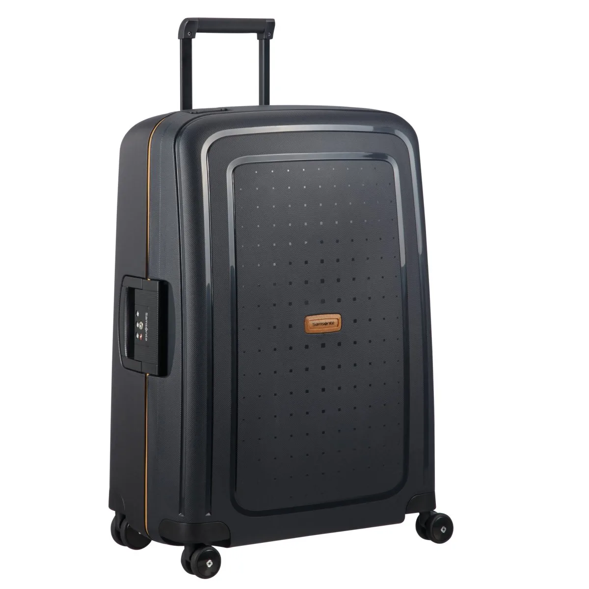 Die S’Cure ECO Serie von Samsonite ist mit recycelten Materialien angereichert und daher eine ressourcenschonende Variante. Zu mind. 85% aus recyceltem Polypropylen hergestellt (Innenfutter zu 100% aus recycelten PET Flaschen), und einer Holzfaser, die dem Tragegriff, Logo und ID-Tag eine einzigartige, natürliche Note verschafft. TSA-Schloss, Tragegriff an der Oberseite und seitlicher Tragegriff, ausziehbare Teleskopstange (2-teilig). Vier in beliebige Richtungen schwenkbare, geräuscharme, weiche Doppelrollen, Bewegung in alle Richtungen möglich, einfache Handhabung. Inklusive Identifikations-/Adressanhänger.