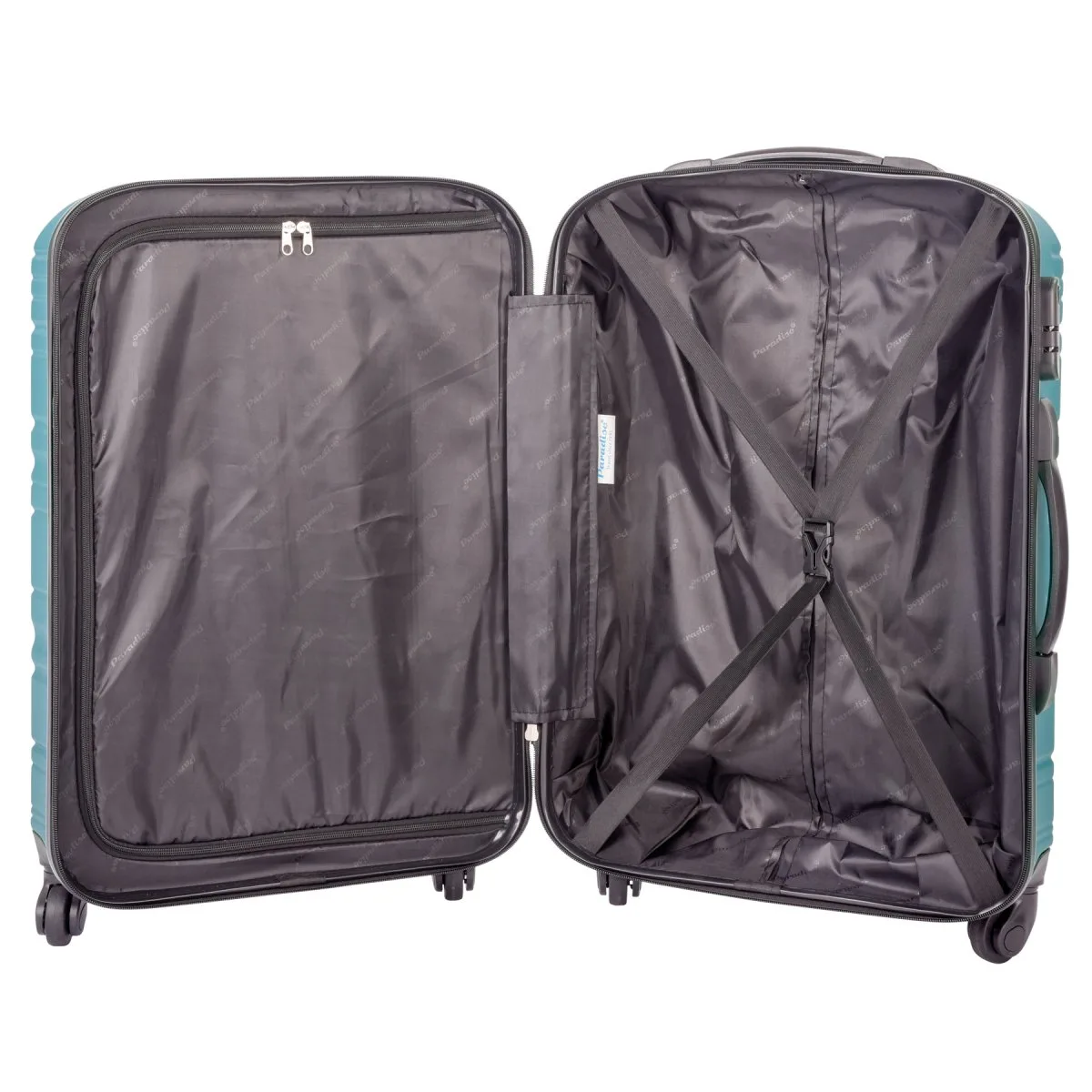 Die Kollektion Santiago von CHECK.IN zeichnet sich durch ihr exklusives Design aus. Die beiseitig packbaren Koffer sind nicht nur stilvoll, sondern bieten auch ausreichend Platz für Ihren nächsten Trip. Der Innenraum wird durch einen Raumteiler unterteilt und die Innentaschen verfügen über einen Packgurt. Das arretierbare und versenkbare Aluminium-Druckknopf-Trolleysystem ermöglicht einen idealen und äusserst bequemen Transport. Abgerundet werden die Trolleys mit vier Zwillingsrollen mit 360° rundum Leichtlauf-Fahrwerk und einem TSA-Zahlenschloss.