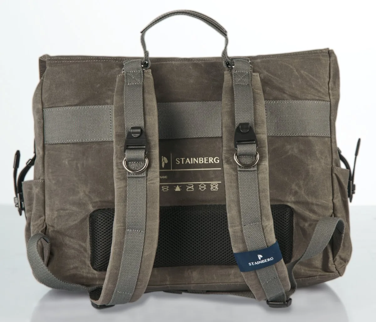 Rucksack aus gewachstem Canvas. Der Stainberg Backpack basiert auf einem Schweizer Armeerucksack und bildet den Ursprung der Marke Stainberg. Das integrierte Laptop-/Tabletfach ist bis zu 15″ geeignet. Ein großes Fach mit diversen Steckfächern und ein RV Fach gehören ebenfalls zur praktischen Innenausstattung. Neben einem Rückenpolster befinden sich auf der Rückseite des Rucksacks zwei gepolsterte Trageriemen. Zudem ist der Rucksack aufsteckbar. Die Seitentaschen mit Schnellverschlüssen bieten zusätzlichen Stauraum.