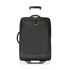 Aussenausstattung: – Arretierbares Teleskopgestänge – Weich gepolsterter Tragegriff oben und seitlich – 2 leise und leicht laufende Rollen – Fach für Getränkeflaschen an der Aussenseite – Reissverschluss-Vortasche mit Organizer Innenausstattung: – Dokumentenfach zum Unterbringen von wichtigen Dokumenten – Zubehörtasche für Periphergeräte wie Ladekabel, Maus, Akkus – Befestigung für Kopfhörer zum Aufhängen – Gurte und Schnallen zum Befestigen empfindlicher Gegenstände – Separates Reissverschlussfach mit herausnehmbarer und gepolsterer Laptoptasche.
