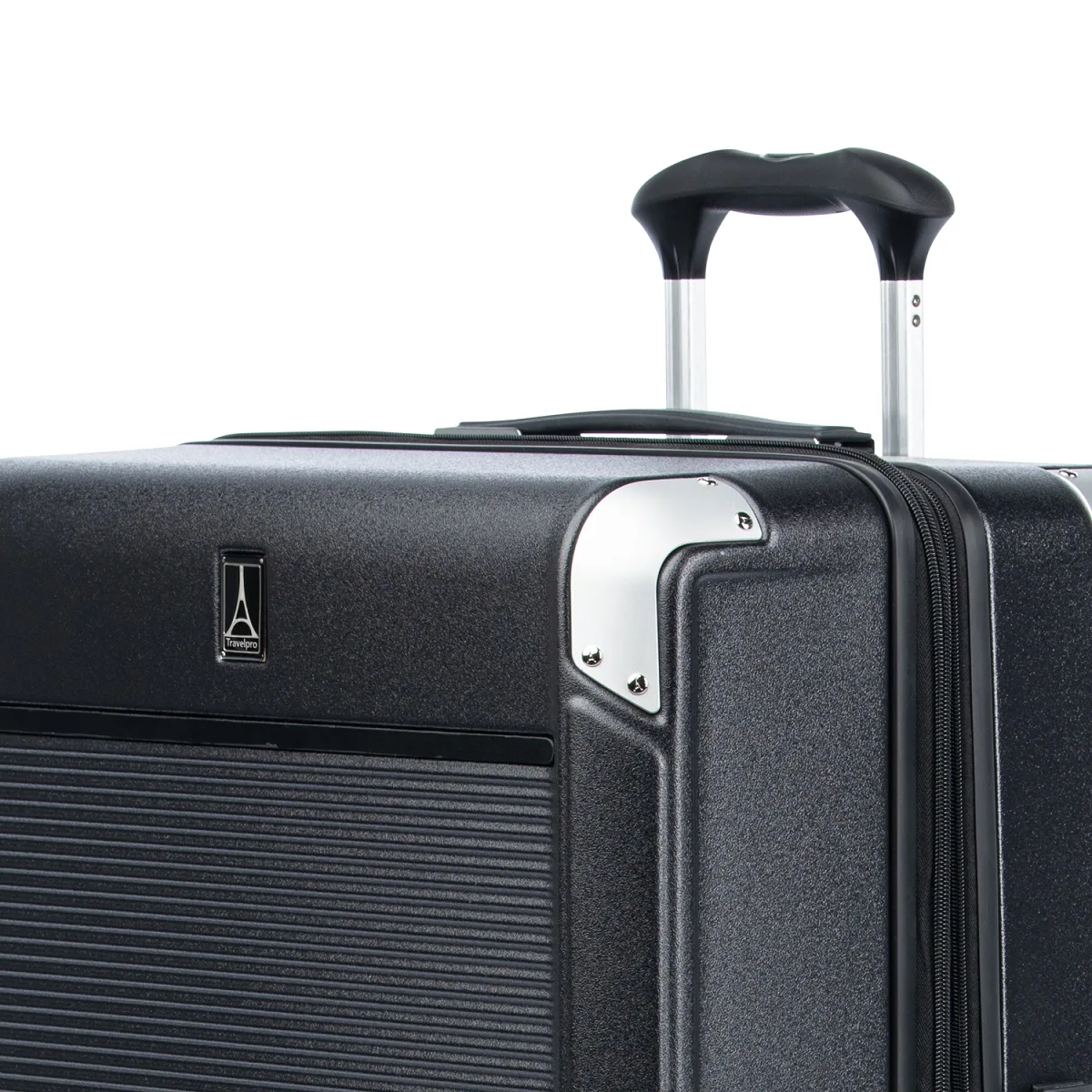 Wohin Sie auch gehen, diese Tasche fliegt mit präziser Kontrolle und mühelosem Rollen, dank des exklusiven PrecisionGlide™ Systems von Travelpro® – acht selbstausrichtende MagnaTrac® Spinner-Räder, die von einem stabilen, vierfach verstellbaren PowerScope Lite Griff mit komfortablem Contour Grip geführt werden.