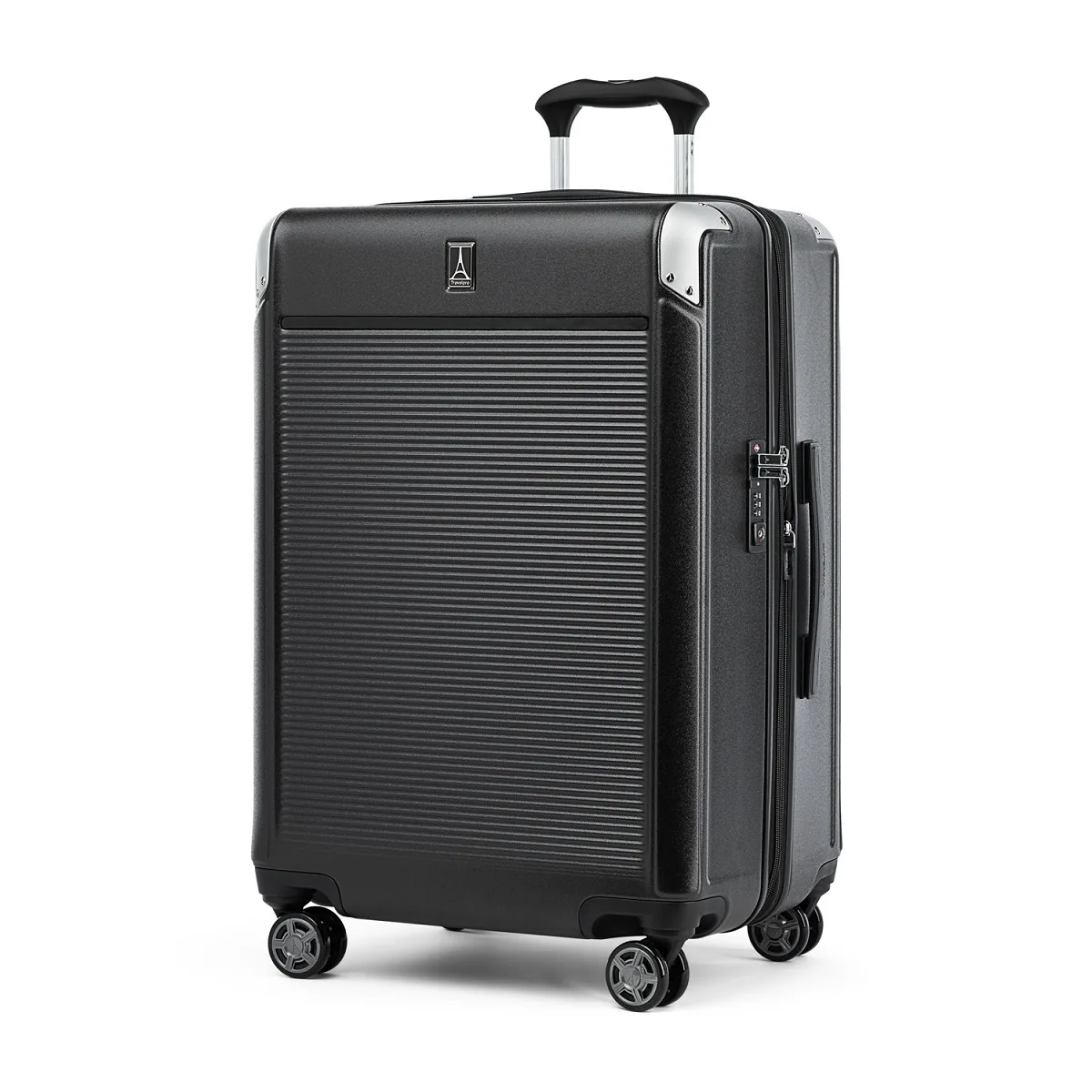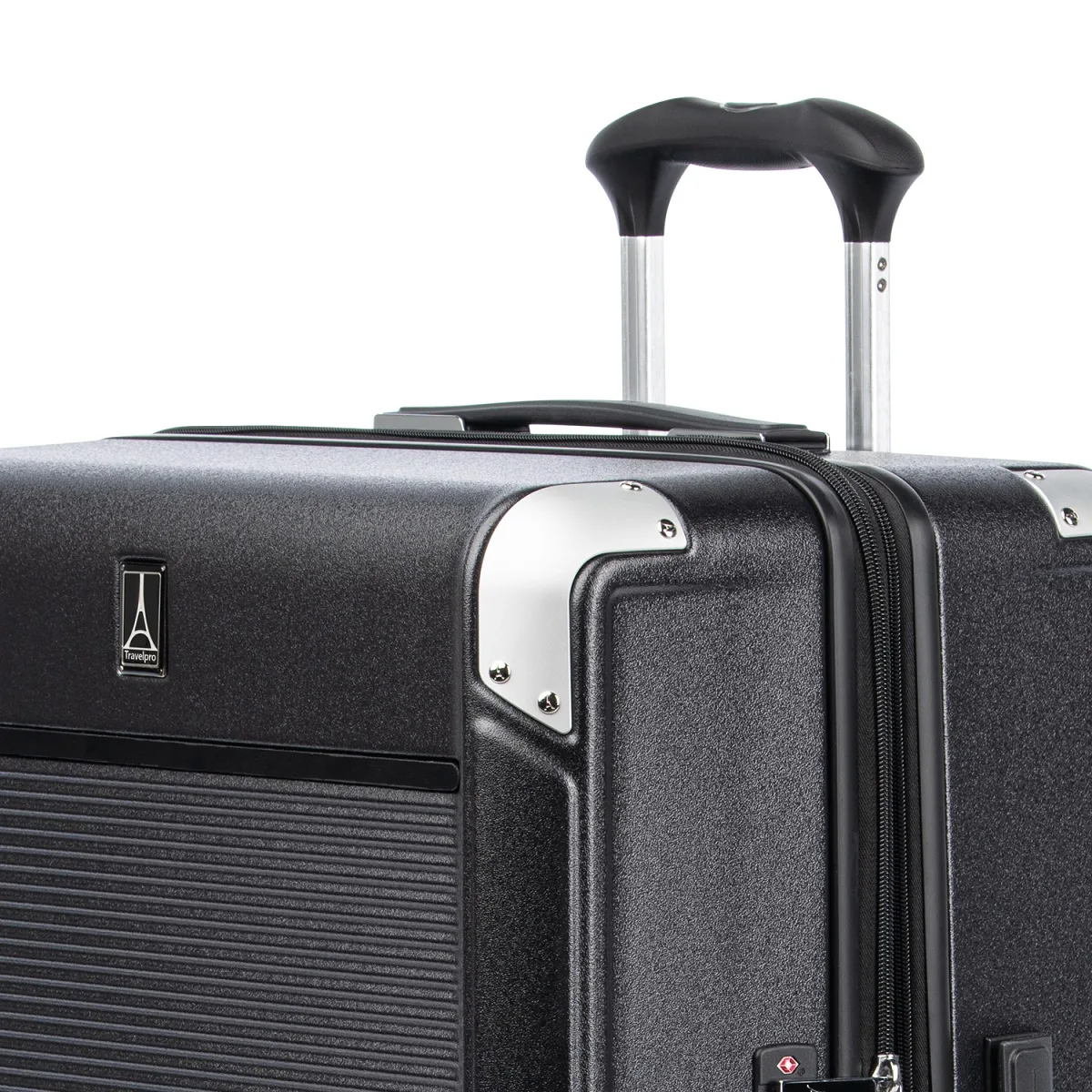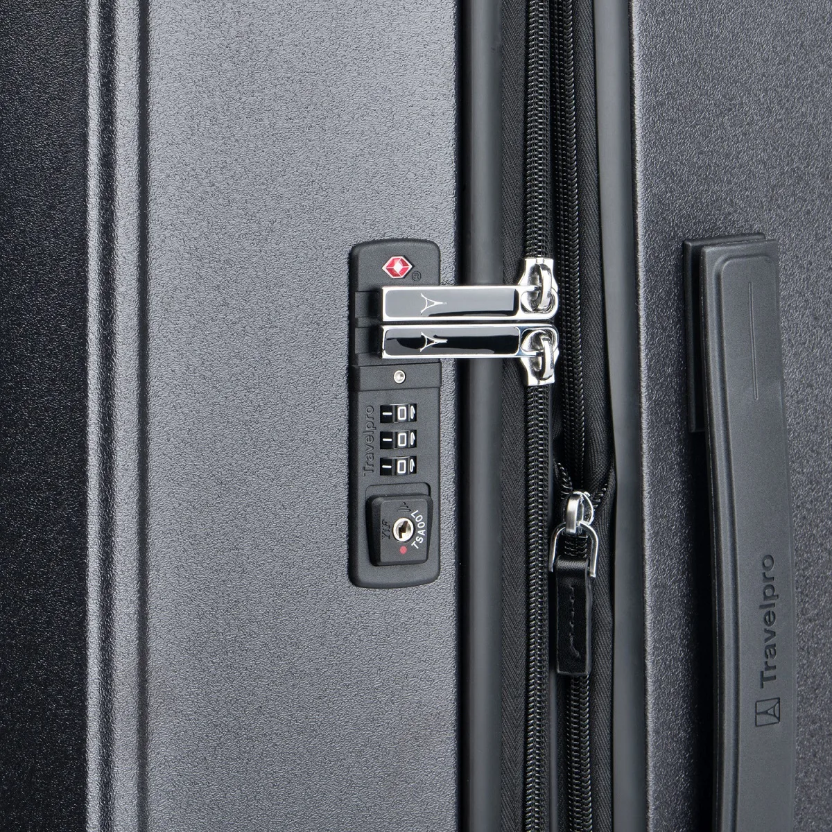 Wohin Sie auch gehen, diese Tasche fliegt mit präziser Kontrolle und mühelosem Rollen, dank des exklusiven PrecisionGlide™ Systems von Travelpro® – acht selbstausrichtende MagnaTrac® Spinner-Räder, die von einem stabilen, vierfach verstellbaren PowerScope Lite Griff mit komfortablem Contour Grip geführt werden.