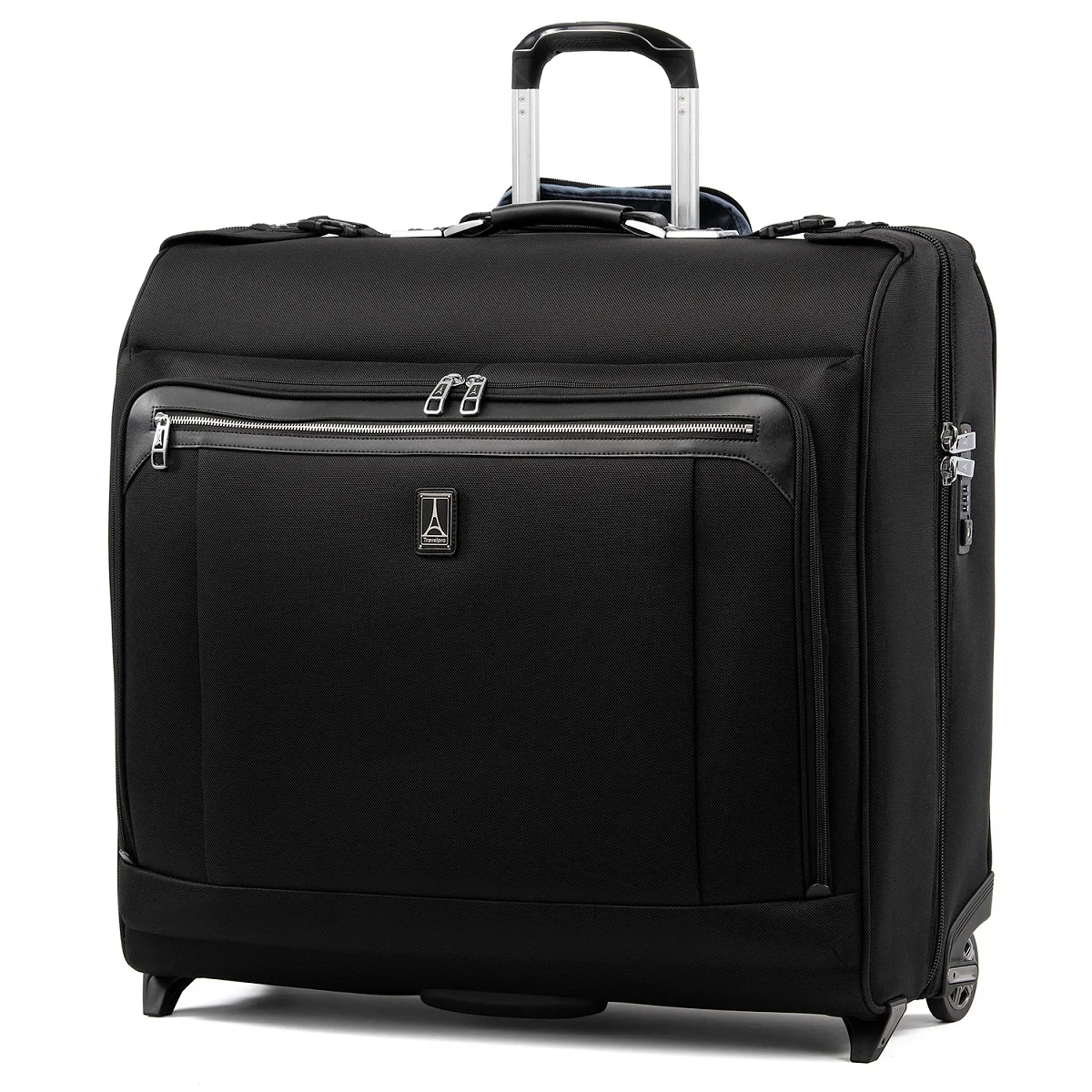 Mehrere Innentaschen bieten Platz für gefaltete Kleidung, Unterwäsche, Accessoires und mehr, während eine große Außentasche und eine kleinere Reißverschlusstasche ausreichend Platz für einen Computer, ein Tablet oder andere wichtige Dinge an Bord bieten. Der ideale rollende Kleidersack für mittlere und längere Reisen. Diese stilvolle Schönheit ist aus hochwertigen Stoffen mit Lederbesatz und einem verchromten Reißverschluss gefertigt. Ein integriertes, TSA-konformes Schloss hält den Inhalt sicher und ermöglicht es den Behörden, den Koffer ohne Beschädigung zu öffnen und zu verschließen, wenn er für die Kontrolle des aufgegebenen Gepäcks benötigt wird. Trotz seiner großzügigen Größe ist die Mobilität auf zwei leichtgängigen Rollen und dem patentierten, verstellbaren PowerScope-Verlängerungsgriff, der das Wackeln minimiert und sich auf verschiedene Höhen einstellen lässt, einfach.
