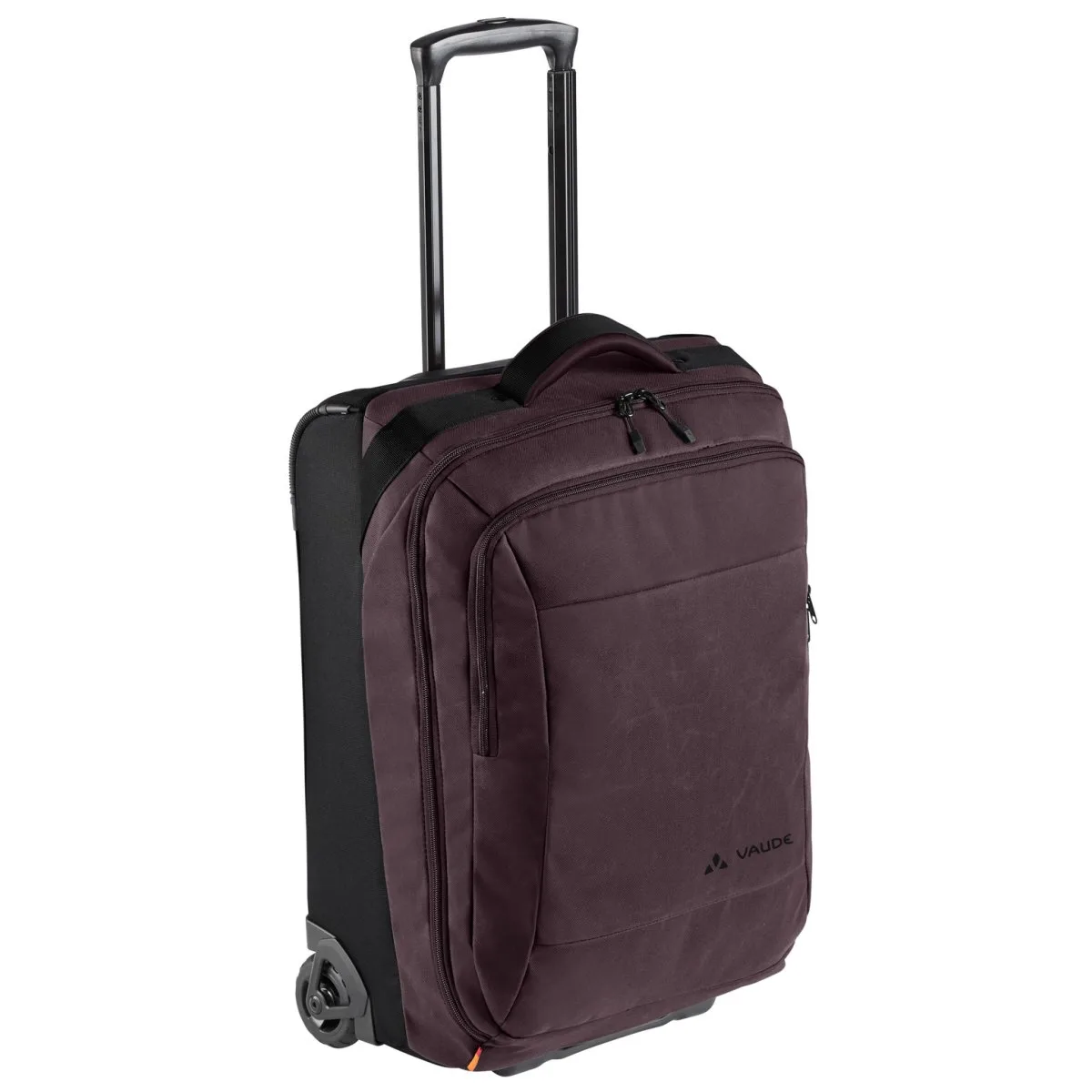 Moderner Trolley für Geschäftsreisende: gewachstes Hauptmaterial, durchdachte Innenorganisation, umweltfreundlich hergestellt. Optimal für Geschäftsreisende, die das Besondere suchen. Sotschi mit 35 l Volumen ist ein praktischer, durchdachter Reisepartner in Handgepäckgröße, der durch seine sinnvolle Fächeraufteilung und seine gewachste Oberfläche seinem Besitzer viel Freude machen wird. Das geräumige Innenfach mit Fixiergurten verwahrt das Reisegepäck zuverlässig; das zusätzliche Frontfach mit Organizer für Schreibutensillien, einem gepolsterten Fach für ein 15,6 Notebook und einem gesonderten Tabletfach ermöglicht einen schnellen Zugriff. Der ausziehbare Griff, die leichtlaufenden Rollen und der extra softe Tragegriff bieten den gewohnten Komfort beim Transport. Das umweltfreundlich gewachste Hauptmaterial dieses Trolleys ist wasserabweisend, widerstandsfähig und bekommt durch intensiven Gebrauch mit der Zeit einen ganz eigenen Charme. Der extra verstärkte Boden schützt das Gepäck zusätzlich. Das VAUDE Green Shape-Label steht für ein umweltfreundliches, funktionelles Produkt aus nachhaltigen Materialien.